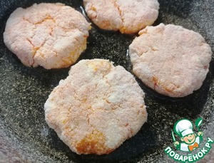 • Хорошо перемешать, сформировать котлеты по размеру булочек, обвалять в манной крупе и обжарить на подсолнечной масле с двух сторон по 3-4 минуты с каждой стороны