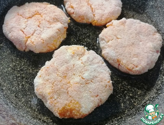 Хорошо перемешать, сформировать котлеты по размеру булочек, обвалять в манной крупе и обжарить на подсолнечной масле с двух сторон по 3-4 минуты с каждой стороны