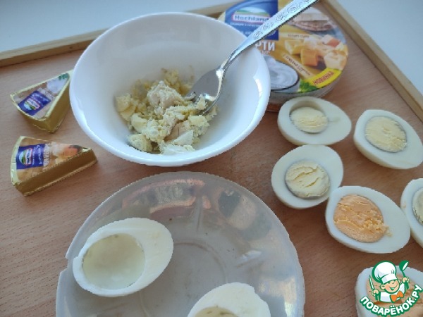Отварите яйца и предварительно достаньте из холодильника сыр, пусть он немного согреется.