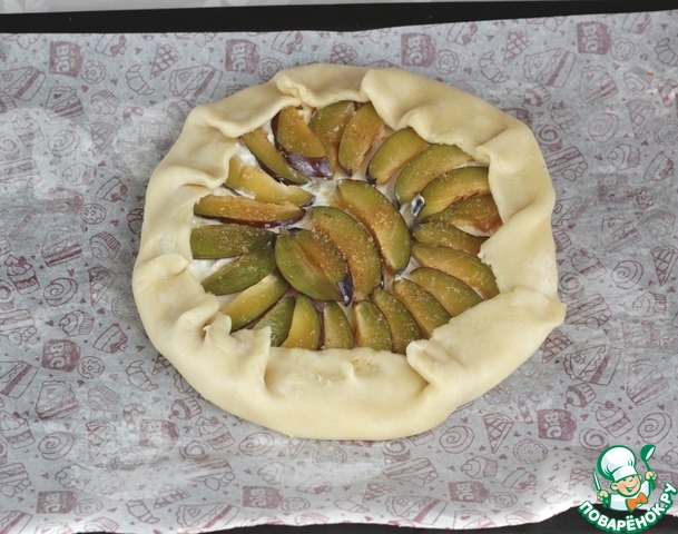 Края теста заворачиваем во внутрь. Можно края галеты помазать желтком.
