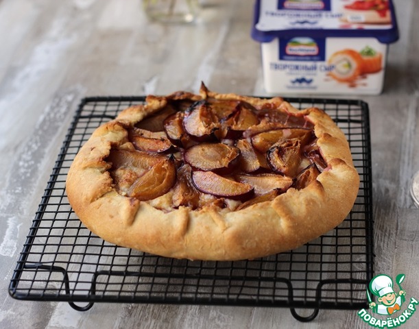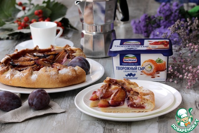 Галета со сливами просто изумительна! Тонкая хрустящая корочка галеты с сочной сладкой начинкой из слив, с нежной прослойкой творожного сыра Hochland - это настоящее наслаждение!