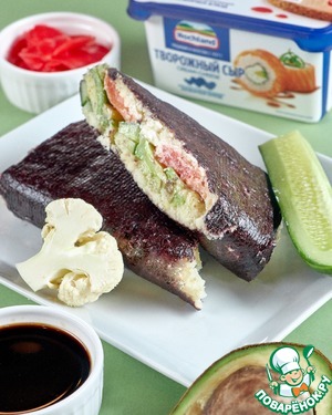 Всем любителям японской кухни посвящается! Отказываться от любимых блюд, если ты на диете - не повод. Данная закуска выполнена по мотивам популярного японского стрит-фуда, с учетом особенностей низкоуглеводного питания. Творожный сыр - один из главных ингредиентов кето-кухни. А Hochland один из самых известных. Формат закуски очень удобен, можно брать с собой хоть на природу, хоть на работу.