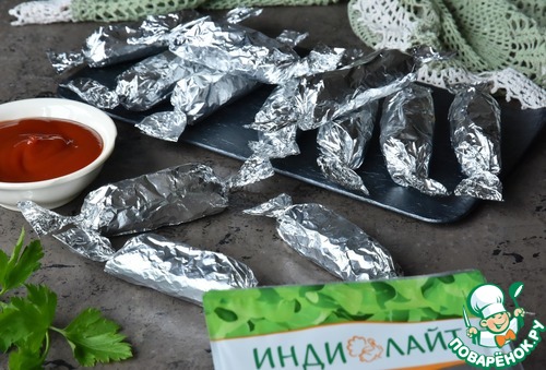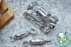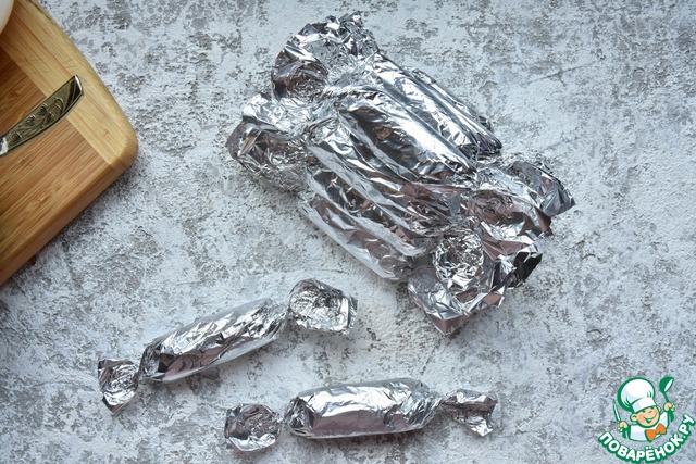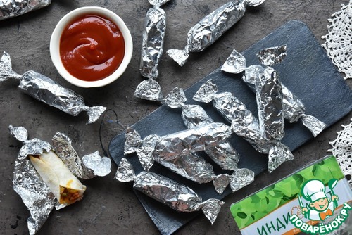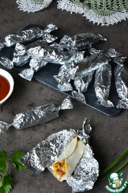 Заворачиваю каждый бурито в фольгу и скручиваю концы как у конфеты.