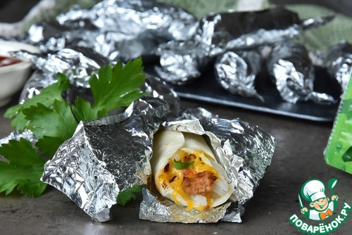 Эти мини бурито отлично подойдут для любой вечеринки в качестве перекуса. Их можно приготовить заранее и хранить в холодильнике до заветного часа. Чтобы их разогреть вам потребуется 10 минут, фольга долго сохраняет мини бурито теплыми и их удобно есть, руки всегда останутся чистыми. Кто устоит перед такими "конфетами" с секретом, завернутыми в шелестящую фольгу? В качестве начинки я использую остатки отварного риса, обжаренный фарш из индейки "Индилайт", сальсу из помидоров, зелени, перца чили и сыр чеддер.