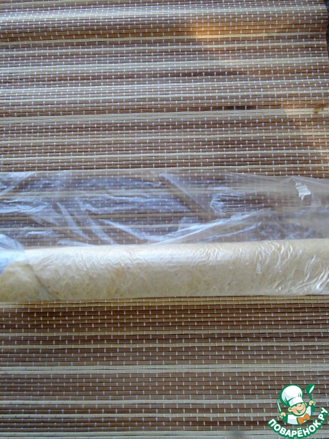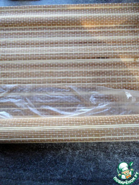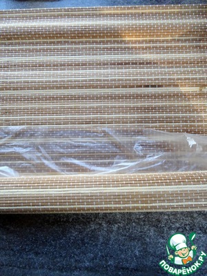Лепёшку разместить на бамбуковый коврик для суши, который надо застелить плёнкой (пакетиком).