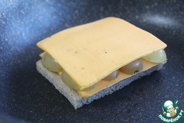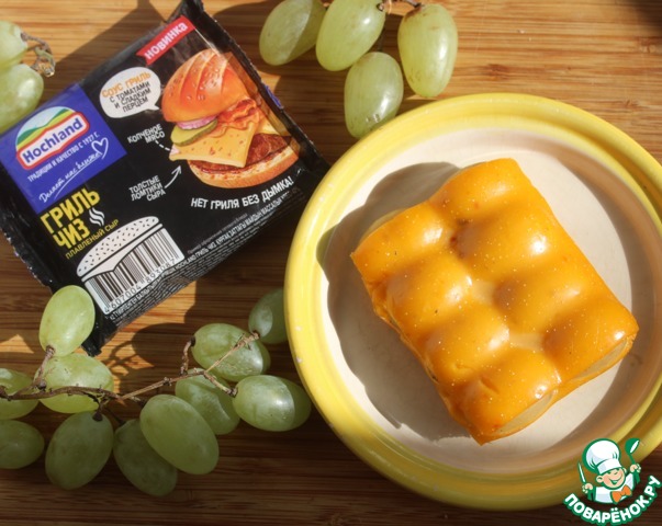 Вкуснейший бутерброд с необычным и пикантным вкусом. Делается на раз-два, а съедается до последней крошки. Плавленный сыр Гриль чиз ТМ Hochland здесь главная скрипка - его необычный вкус гармонично переплетается с сочным виноградом и хрустящей корочкой серого хлеба, поджаренного на капле оливкового масла. С чаем, с кофе, с бокалом белого вина - идеально! Пробуем?