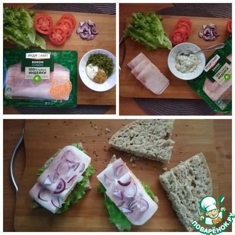 Сэндвичи из домашнего ржаного хлеба с овощами и беконом из индейки. Сытный перекус на все случаи.