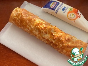 Сверните в рулет ( бисквит получается эластичным и он легко сворачивается, не ломаясь).
