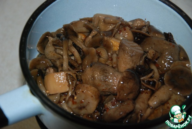 - Соль (Нужно ориентироваться на соленость грибов.) — по вкусу