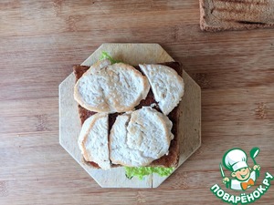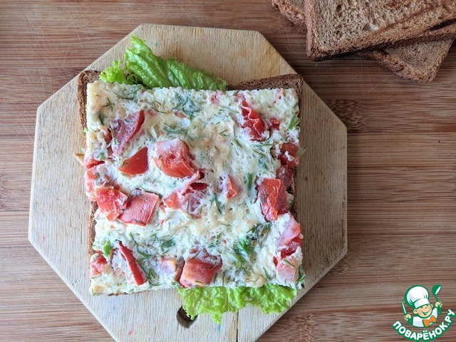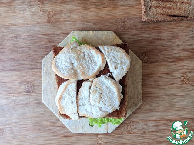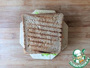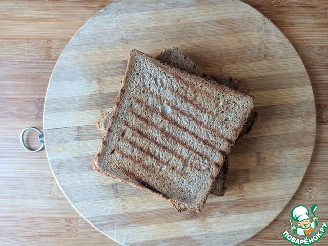 Придавливаем третьим ломтем подсушенного хлебного тоста.
