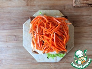 На индейку кладём морковь по-корейски.