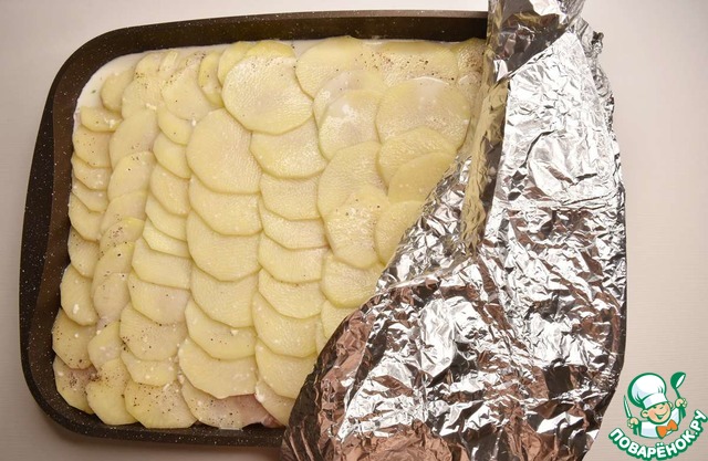 Накрываю форму фольгой и запекаю в духовке, разогретой до 180 градусов 2 часа. За 20 минут до готовности фольгу снимаю.