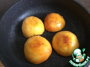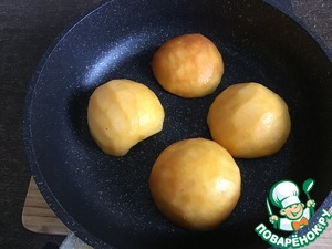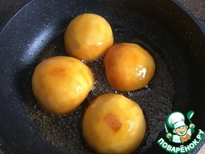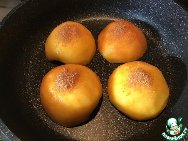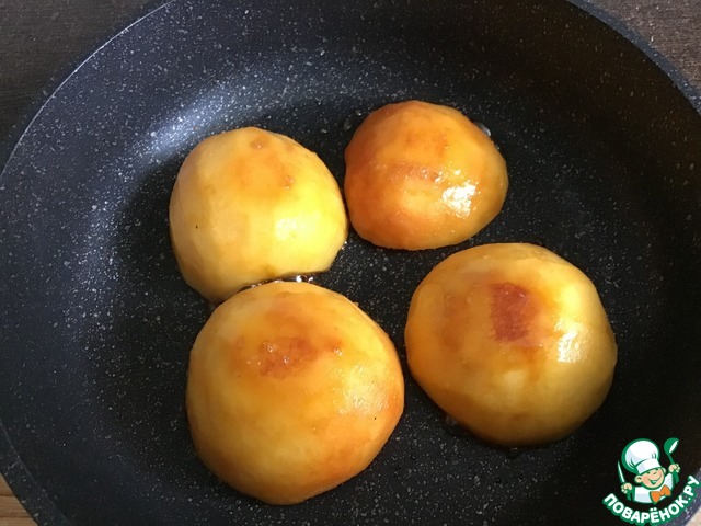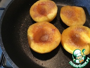 • Подготовленные персики выложить на сухую сковороду и разогреть на среднем огне.