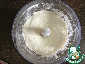 • Приготовить крем. Для этого в кухонный процессор добавить греческий йогурт без добавок, сахарную пудру и творожный сыр (я использовала творожный сыр Сливочный от Hochland). Взбить до однородной консистенции. Крем можно приготовить и без сахара.