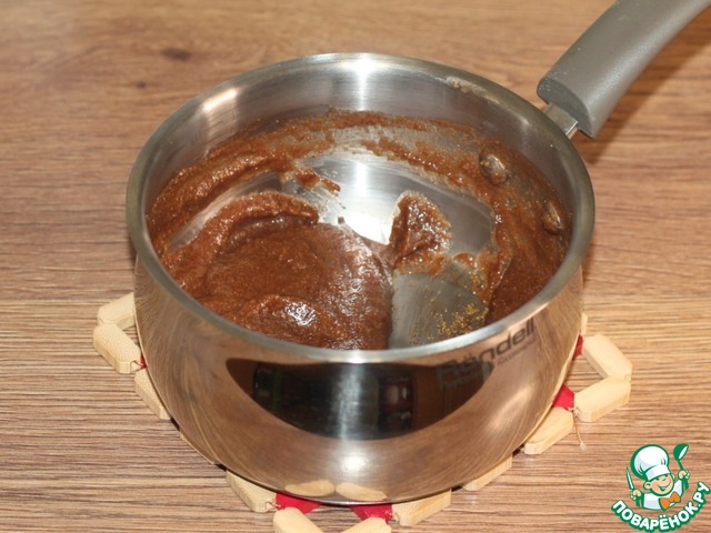 14. Выливаем смесь в ковшик и добавляем растительное масло.