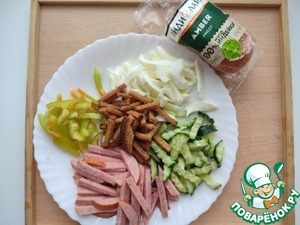 Остальные ингредиенты нарезаем тонкой соломкой.