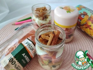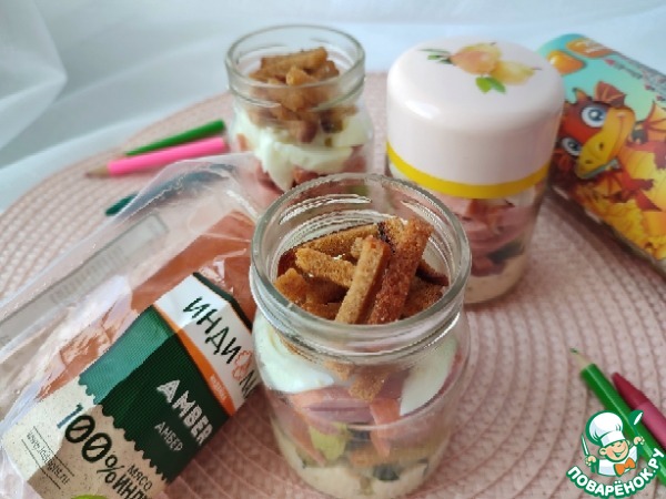 В последнюю очередь сухарики. Закрываем крышку и берём с собой))