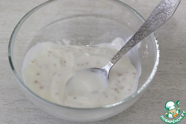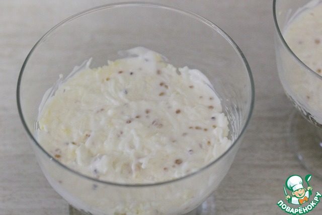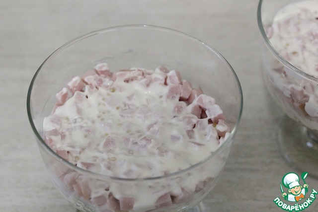 Приготовить соус: майонез смешать с зернистой горчицей.