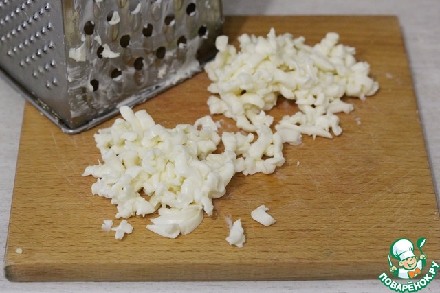 Тёрку нужно предварительно смазать растительным маслом, так будет легче натирать сыр. Либо треугольнички можно заранее подморозить. -