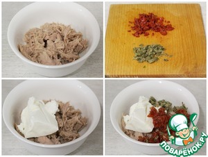 Рецепт «Брускетта с тунцом и вялеными томатами»: