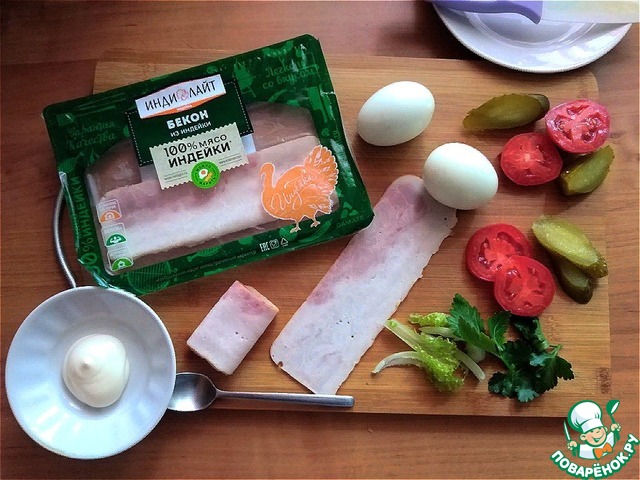 - Бекон (из индейки ТМ ИНДИЛАЙТ) — 2 ломт.