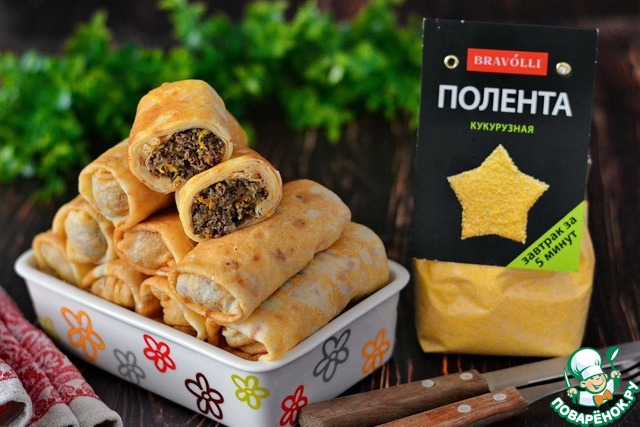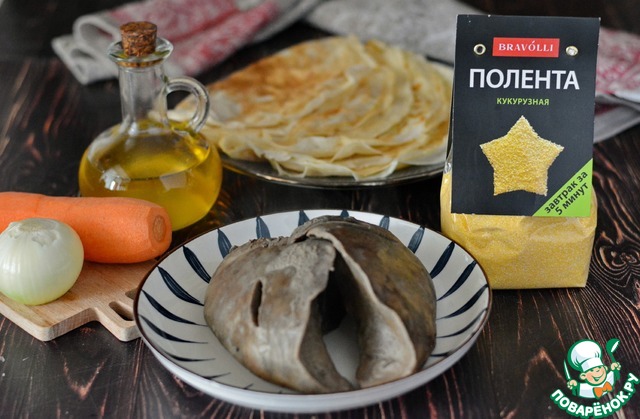 Рецепт «Блинчики, фаршированные лёгким и кукурузной полентой»: