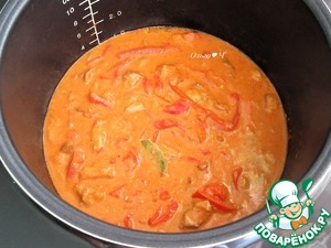 Добавьте соус в мультиварку за 5 минут до окончания приготовления вместе с лавровым листом, постоянно помешивая, пока соус не загустеет.