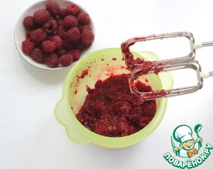 Малину смешать с сахаром по своему вкусу и измельчить миксером или блендером.