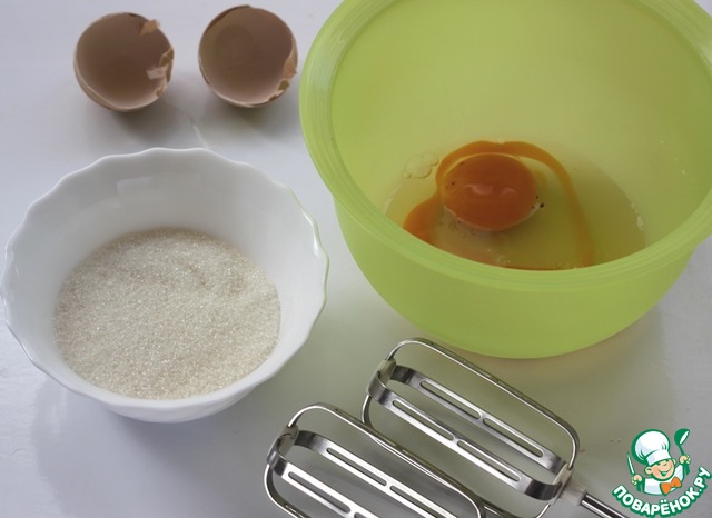 Взяла двойную норму продуктов, пекла в разъемной форме диаметр 23 см, - бисквит вышел великолепный, почти 5 см в высоту