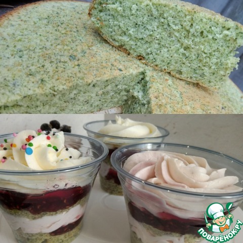 Для приготовления трайфла чаще всего используют бисквиты. Попробуйте приготовить этот десерт из шпинатного бисквита.