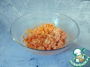 Плавленый сыр заморозить в морозильнике. Натереть на мелкой терке.