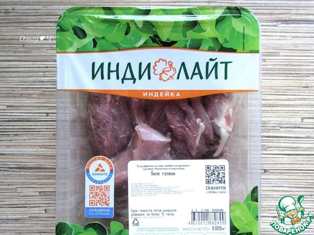 • Для приготовления котлеты я использовала филе голени индейки ТМ Индилайт.