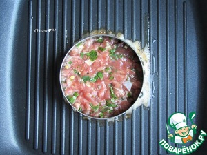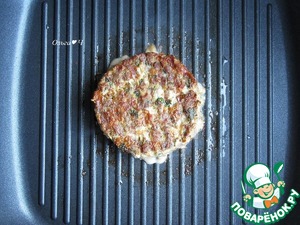 • Затем смажьте сковороду растительным маслом и выложите котлетную массу с помощью кулинарного кольца (диаметром почти как булочка). Жарьте на огне чуть выше среднего 6-7 минут.