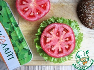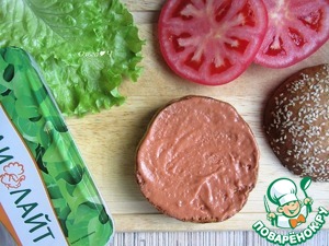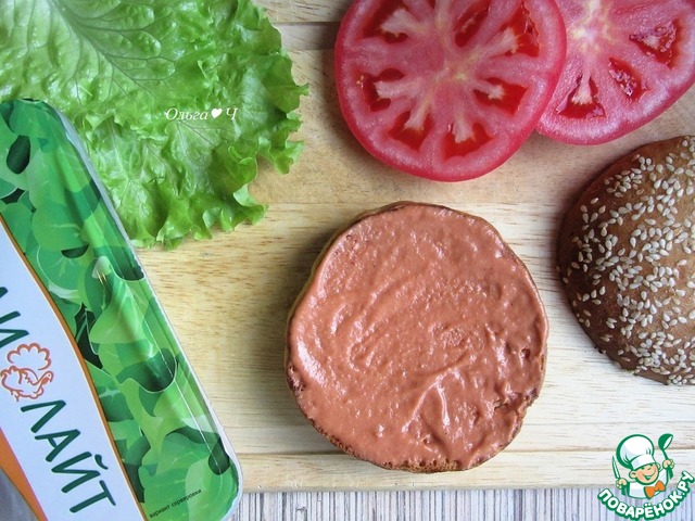 • Соберите чизбургер. Нижнюю часть булочки смажьте половиной соуса.