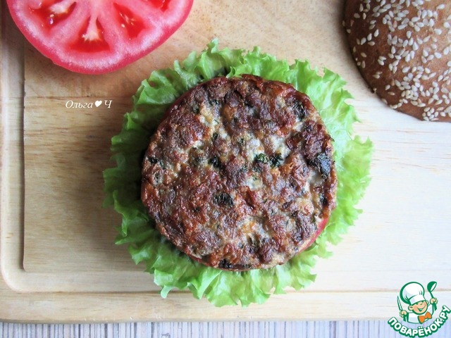 • Снимите кольцо, аккуратно переверните котлету и обжарьте с другой стороны еще 5-6 минут. Не пересушите.