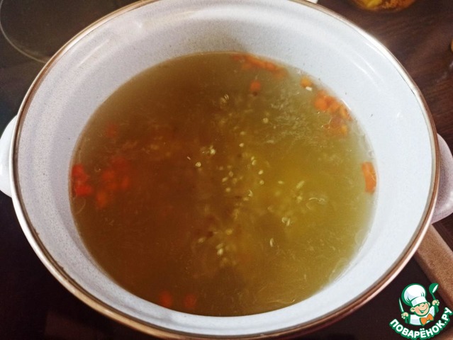 Подготовить ингредиенты. Я готовила в 1,5 литровой кастрюльке, ингредиенты даю на 1 литр супа.