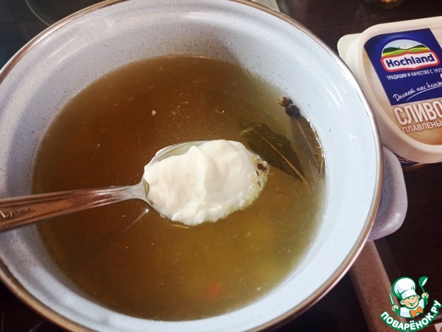 Добавить в суп плавленый сыр ТМ Hochland и, помешивая, расплавить его.