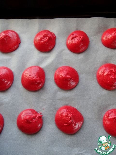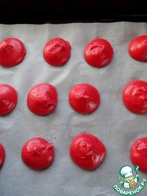 Поглядывайте за бисквитами, не стоит их подрумянивать (чтобы не потерять яркость и воздушность), пропекаются они достаточно быстро.
