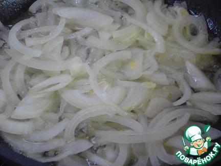 Лук нарезать тонкими полукольцами и обжарить на растительном масле до золотистого цвета.