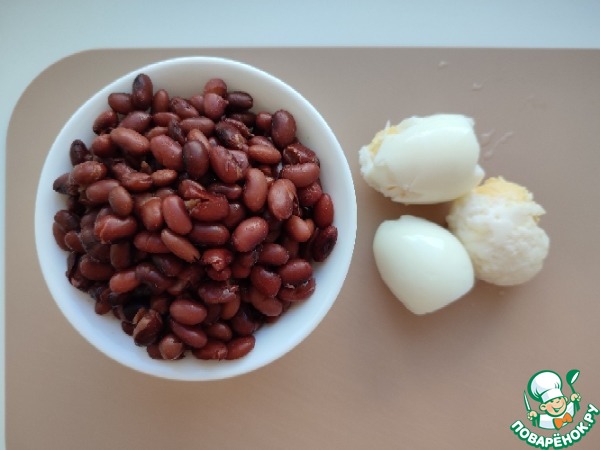 Отправляем фасоль и яйца в блендер. В рецепте указано два яйца, брала три, потому что очень маленькие. -