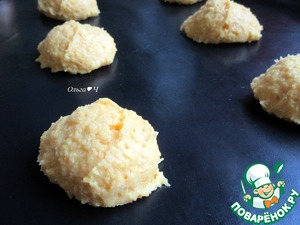 Выложите тесто с помощью ложки для мороженого (или с помощью двух столовых ложек) на противень, застеленный ковриком для выпечки.
