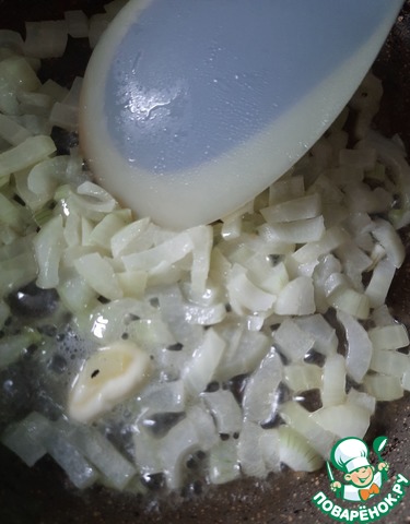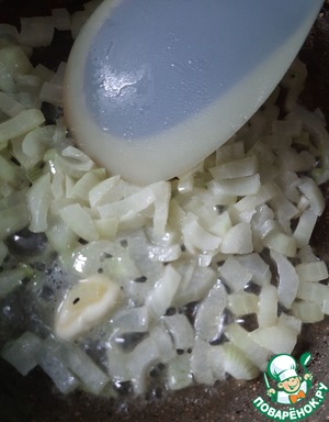 Лук мелко рубим и обжариваем на сливочном масле до прозрачности