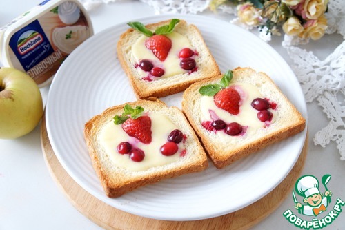Как сделать десерт из хлеба за 5 минут? Легко, если в холодильнике найдётся сливочный сыр Хохланд. За короткое время в духовке сыр превратится во вкуснейший крем. Нехитрый рецепт на случай, когда хочется вкусненького к чаю-кофе по-быстрому.