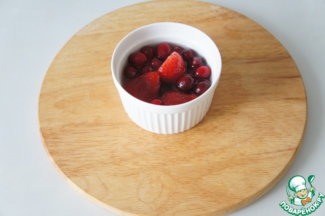 Любые замороженные ягоды залейте на полминуты водой. Чтобы быстрее начали оттаивать.