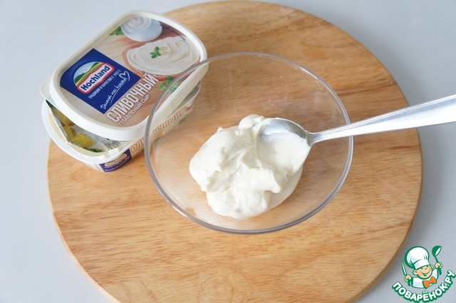 - Сыр сливочный (плавленый Хохланд) — 100 г