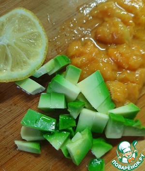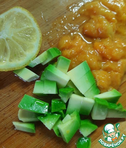 Измельчить авокадо и сбрызнуть его соком лимона. -