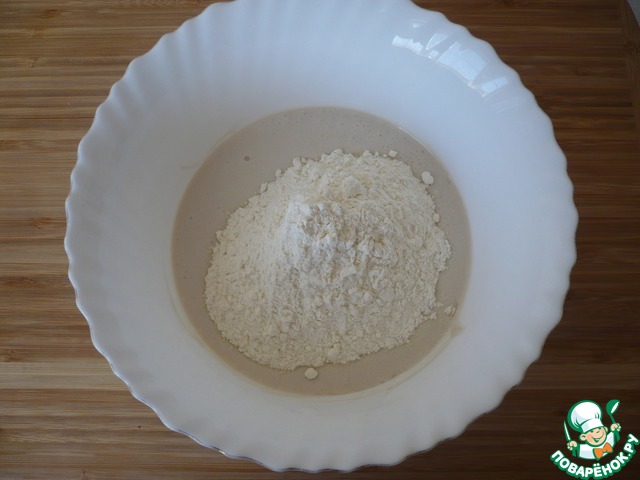 Для приготовления теста в миску влить простоквашу комнатной температуры, добавить быстродействующие дрожжи, сахар и все хорошо перемешать. Затем частями всыпать муку пшеничную, соль и влить растительное масло.