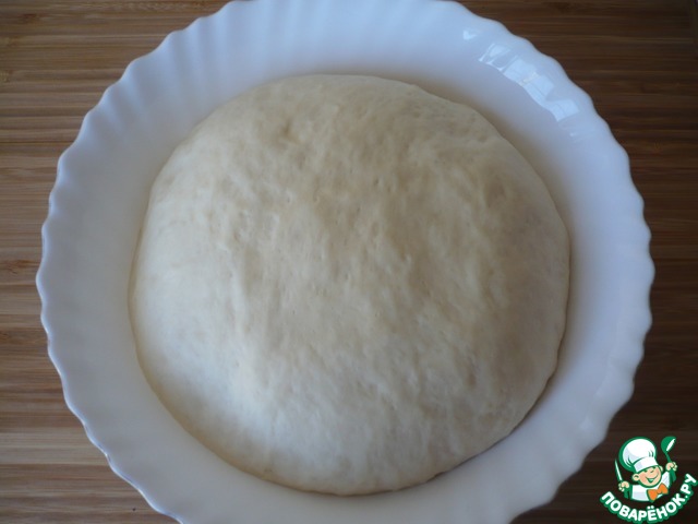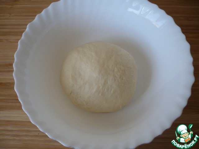 Замесить тесто, накрыть его пищевой пленкой и убрать в теплое место на 40 минут для подъёма.