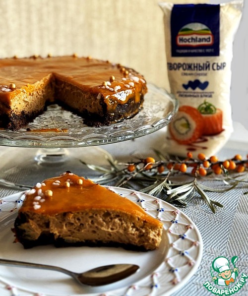 Оказывается, у меня сегодня праздник. Ровно 15 лет верности этому сайту. И мой 250-й рецепт. В честь праздника я угощаю вас очень нарядным и вкусным чизкейком с кофейно-шоколадным основанием, начинкой из творожного сыра с вареной сгущенкой и облепиховым соусом. Это безумно вкусно. Этот рецепт я взяла у Виктории Мельник из ее книги Чизкейк внутри. Мне очень нравится эта талантливая девочка.