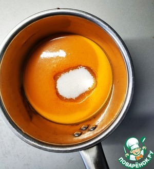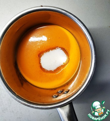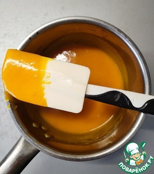 Для соуса нужно протереть ягоды облепихи, приготовить пюре. У меня уже готовое пюре. Добавить сахар и прокипятить пару минут.